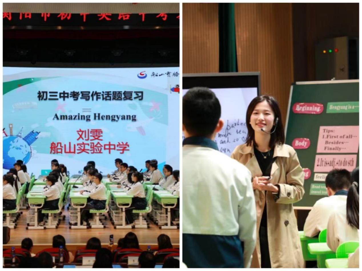 来自衡阳市船山实验中学的刘雯老师开启了一场深度的衡阳文化之旅。刘老师循循善诱,引导学生从天气、交通、旅游胜地和食物等方面对衡阳进行了全方位的表达,通过创设与主题意义密切相关的情境——第三届湖南文旅大会,对主题所承载的文化信息进行了深思挖掘,聚焦学生们思维品质的培养。