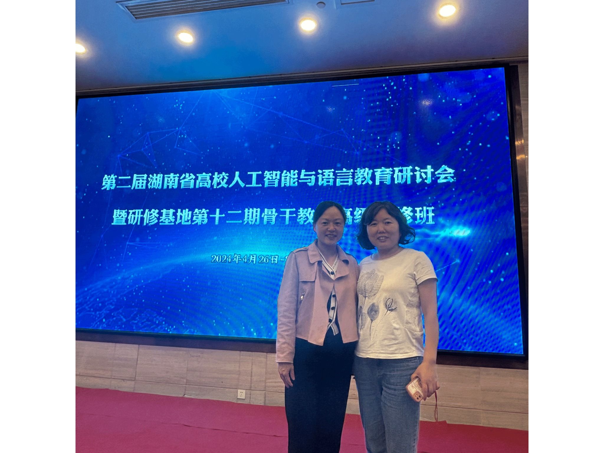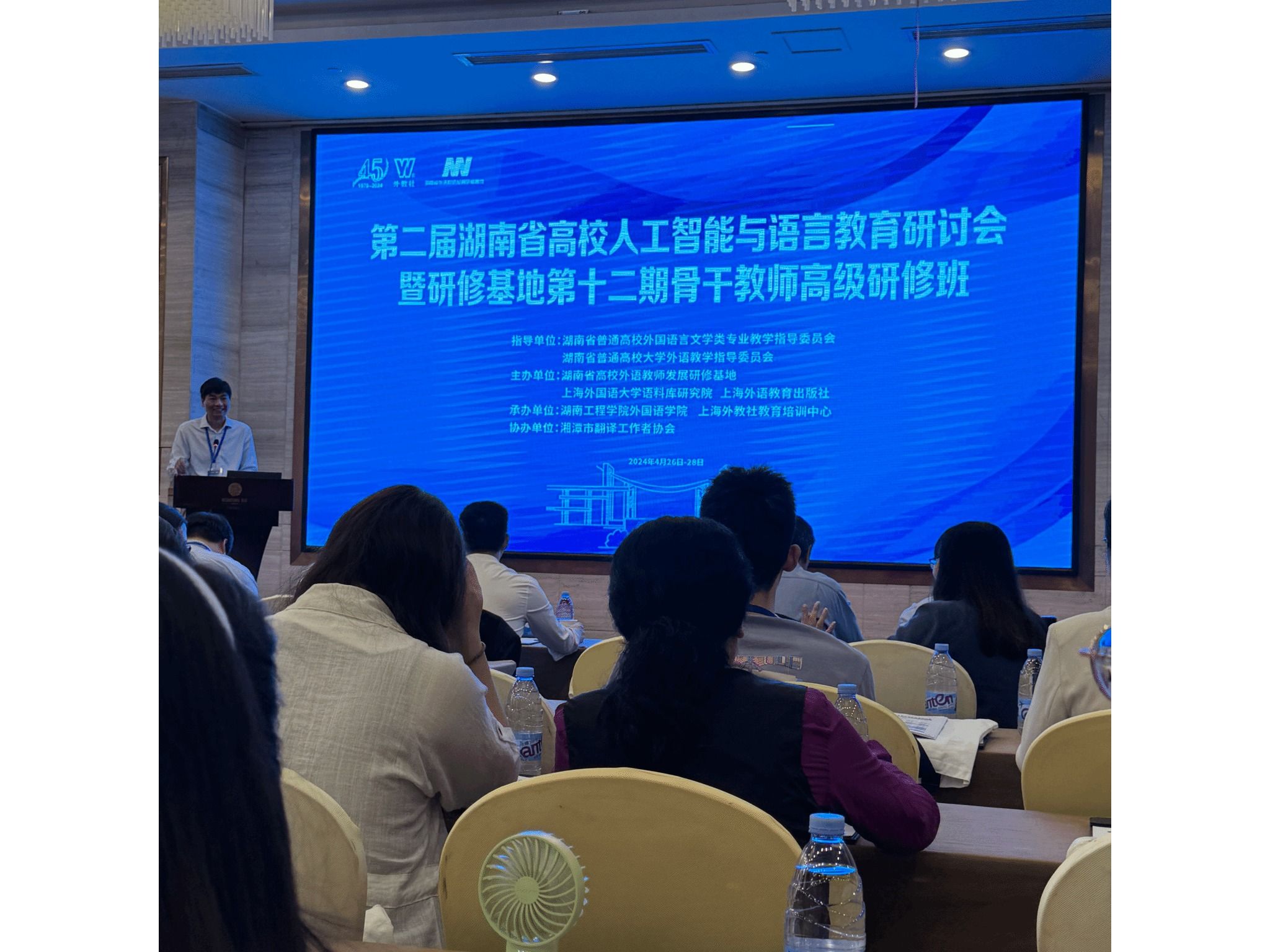 为全面贯彻落实党的二十大报告精神,积极响应2024年全国两会的《政府工作报告》,深化人工智能与语言教育的融合,推动数字技术与教育领域的紧密融合,聚焦新时代高等院校外语教育高质量发展的重点,帮助我院教师提高语言教育质量和效率,呼应我院“课堂教学革命活动月”的“开展‘人工智能+’行动,以人工智能技术(AI技术)赋能高等教育教学,让技术进步造福全体师生”主题,yL23411永利集团官网登录副院长谢彩虹和朱艳宁老师于2024年4月26至28日参加了在湘潭举办的第二届湖南省高校人工智能与语言教育研讨会暨湖南省高校外语教师发展研修基地第十二期骨干教师高级研修班,本期研修班主题为“人工智能赋能语言教育创新与高质量发展”。