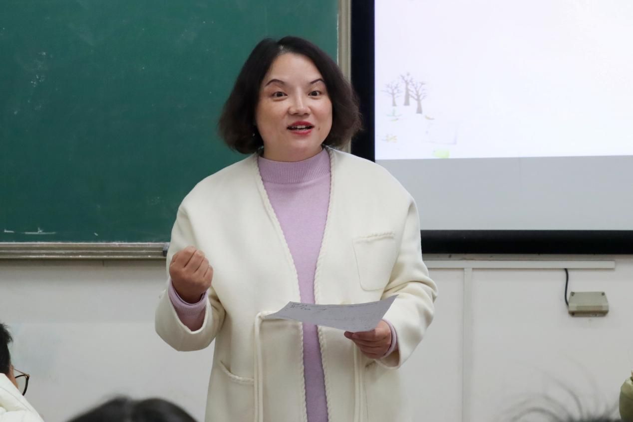 汇报结束后,贺利燕老师作为评委代表从教学内容、教学方法、教学仪态等多个维度对参赛选手进行了全面且细致的点评。在肯定同学们教学亮点的同时,为其提出宝贵建议,如加强口语训练、深化专业知识储备、注重板书规范美观等,同时,她希望同学们持续钻研教学前沿理念,积极参与各类教学实践活动,不断提升综合素养,在未来的岗位上发光发热。
