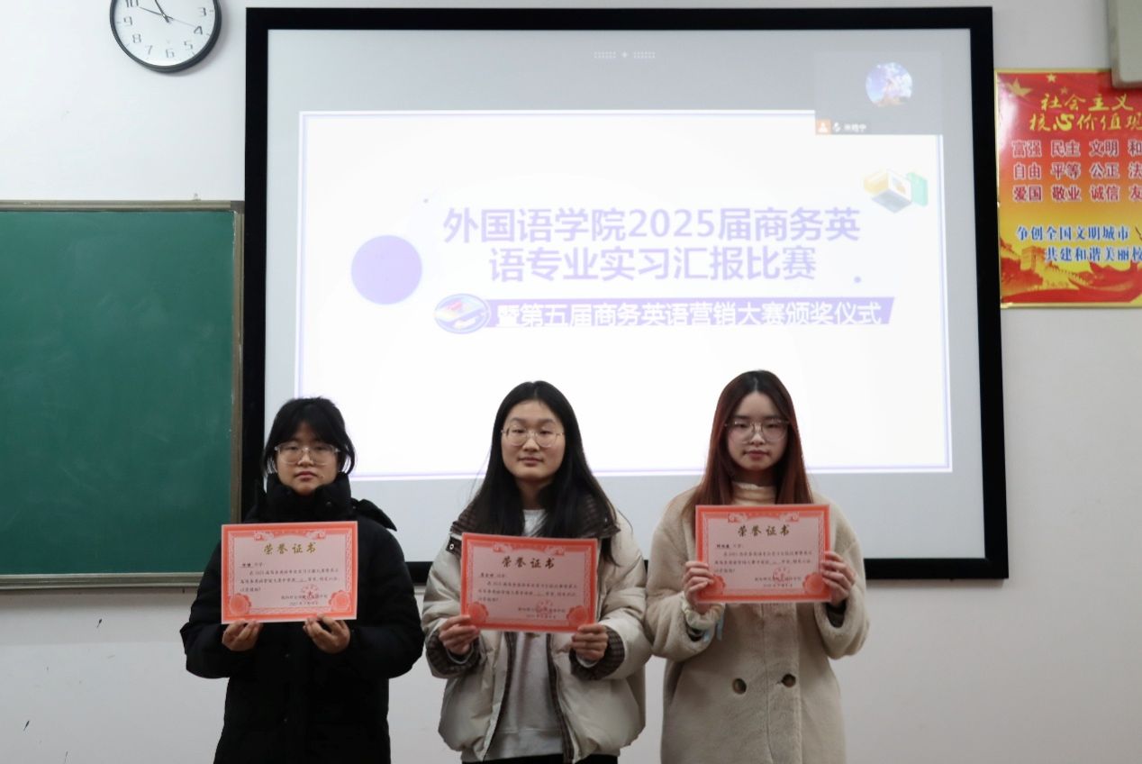 以赛促学,学以致用;以赛促教,教以创新。为培养商务英语专业学生的思维能力与营销策略的应用能力,3月8日上午8:00,yL23411永利集团官网登录于外语楼北207教室举办2025届商务英语专业实习汇报比赛暨第五届商务英语营销大赛,商务英语系教师朱艳宁、陈兰和刘聪担任比赛评委。