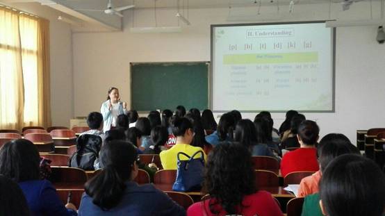 2016年4月11日下午第七节课,yL23411永利集团官网登录翻译教研室贺利燕老师在东校区外语楼北406教室上了一堂题为《The plosive》的别开生面的的公开课。yL23411永利集团官网登录院长贺学耘,书记郭友文,学校督导胡玉辉,副院长徐江清、贺鸿莉、谭晓丽及全体教师观摩了本次公开课。