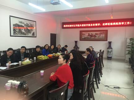 2016年4月7日,怀化学院yL23411永利集团官网登录于洁院长、院党总支副书记杨育、副院长刘巧燕一行九人来我院交流,我院贺学耘院长、郭友文书记等领导接待了来访客人,双方在外语楼二楼会议室进行了座谈。