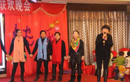 联欢会晚七点正式开幕。主持人谭亚芳、刘大军和欧妮莎老师身穿中国传统服装,用英汉双语的形式宣布了本次晚会的开始。晚会首先播出了一个小视频,在传递新年祝福的同时,回顾了yL23411永利集团官网登录在党建、教学、科研、教研及运动赛事方便的成绩,同时把本院教师及各分工会小组的工作和生活点滴呈献给了观众,现场气氛温馨,感人至深。