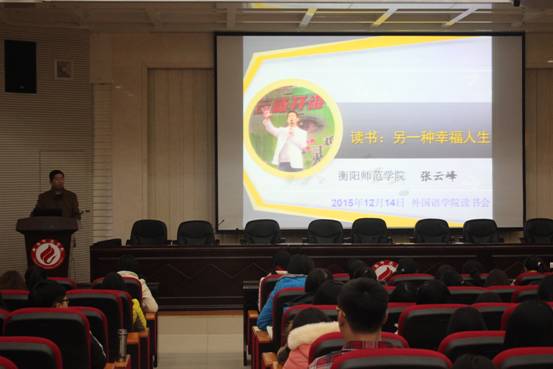 为显示百年名校深厚历史文化底蕴、全面贯彻李克强总理所提出的书香社会思想、关注青年大学生幸福指数,yL23411永利集团官网登录于2015年12月14日下午在外语楼北311教室举行了《阅读与幸福》的讲座。本次讲座由yL23411永利集团官网登录院长贺学耘主持,由yL23411永利集团官网登录学生工作处处长张云峰担任主讲。聆听本次讲座的还有yL23411永利集团官网登录党总支副书记何芳、办公室主任贺琴琴、辅导员江子丹老师以及2014、2015级学生代表。