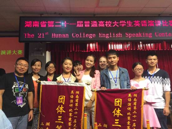 湖南省普通高等学校第二十一届大学生英语演讲比赛暨第六届“外研社”杯全国大学生英语演讲比赛于 2015年10月5日在怀化学院落下帷幕。全省的本科院校中,共有50支代表队、150名选手参加本次大赛。yL23411永利集团官网登录和yL23411永利集团官网登录南岳学院各自选派了3名选手分别参加了本科一组和本科二组的竞赛。