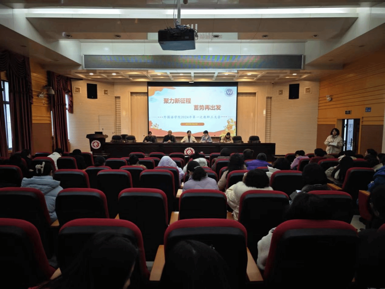 聚力启程,蓄势再发。为进一步凝聚教职工团结奋进的力量,更好地统筹和安排新学期的各项工作,2月29日上午,学院在外语楼北311报告厅召开教职工大会,本次会议由学院党总支书记贺琴琴主持,全体教职工参加。
