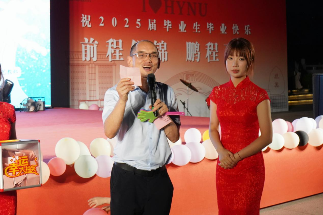 6月4日晚19:00,yL23411永利集团官网登录“以语为翼,逐梦万里”2025届毕业晚会于衡阳师范东校区校友广场顺利举行。yL23411永利集团官网登录党总支书记贺琴琴、院长刘剑、党总支副书记欧阳竹、学工办主任邱国周,2025届毕业生班主任老师、辅导员老师以及各兄弟学院的老师们出席晚会,2025届毕业生、2023-2024级部分学生参加此次晚会。