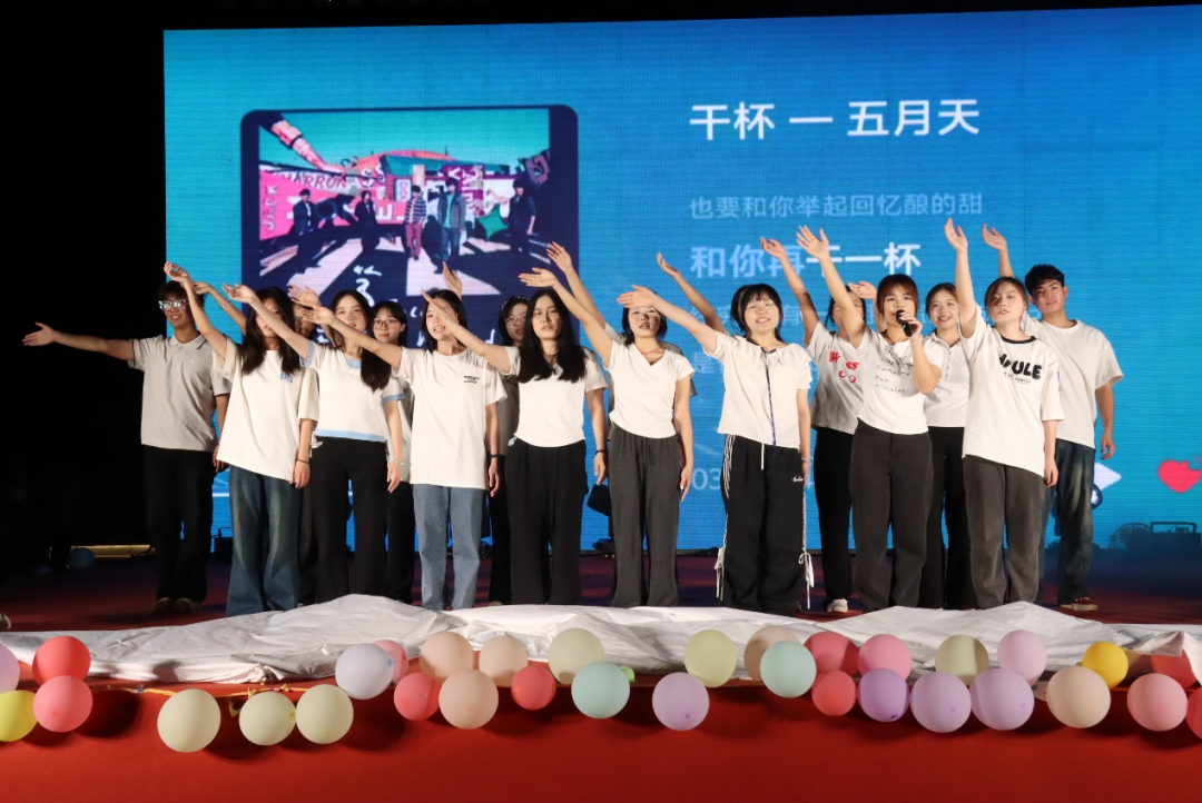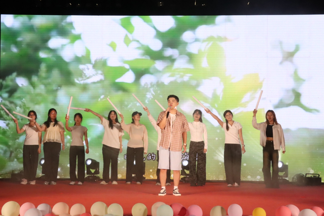 随着激昂的音乐响起,林叶晟等同学手持话筒,如同春日里绽放的花朵,他们的笑容灿烂,舞步轻盈,瞬间以激情的歌声点燃了全场的热情。《鲜花》象征着青春和希望,为毕业生们的未来之路铺满了色彩。