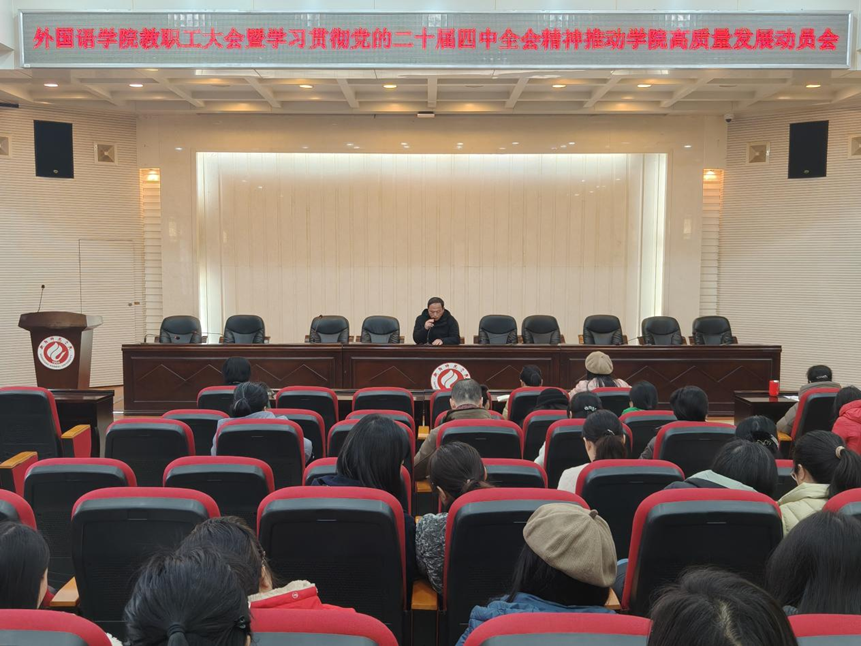 3月5日上午,yL23411永利集团官网登录学习贯彻党的二十届四中全会精神推动学院高质量发展动员大会在外北311报告厅召开,学院全体教职工参加。会议由学院党总支书记周华作动员讲话,党总支副书记、院长刘剑主持,为全院教职工锚定发展方向、凝聚奋进力量。