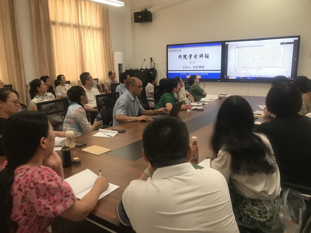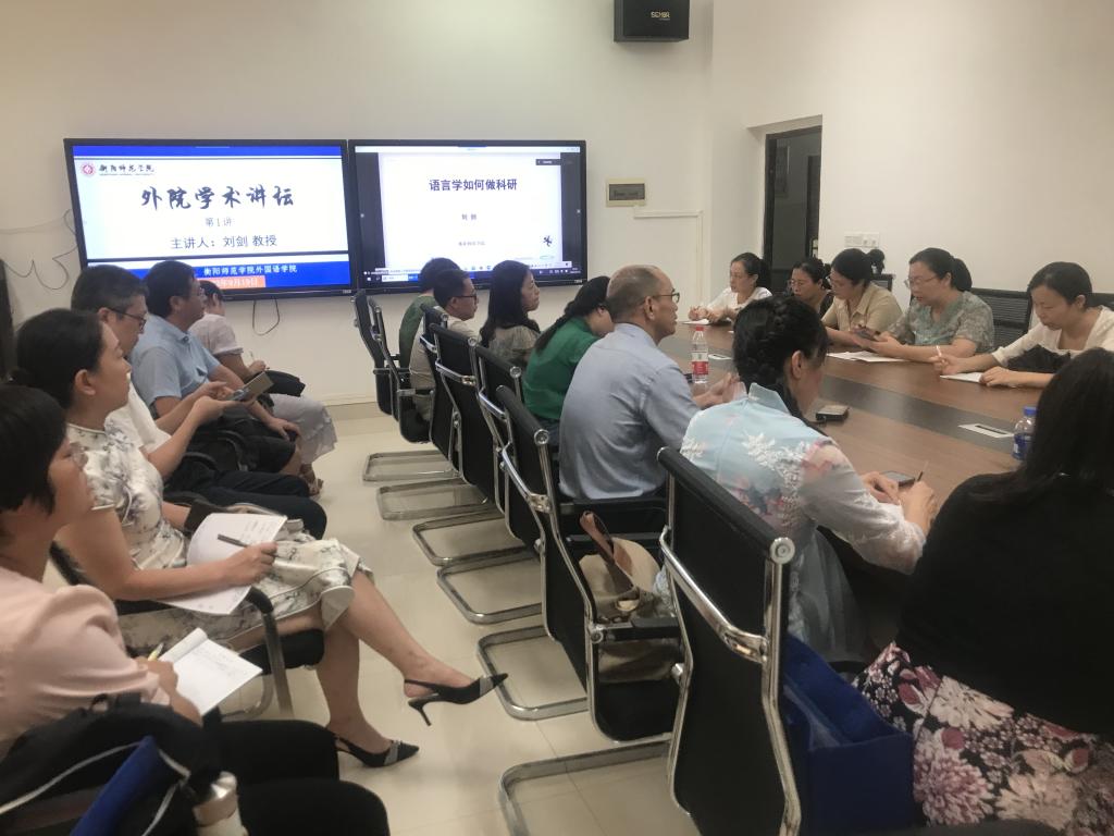 yL23411永利集团官网登录院长刘剑教授率先开讲,作了一场题为“语言学如何做研究”的学术讲座。外国语学院英语系、翻译系和商务英语系部分教师参加了本次讲座。