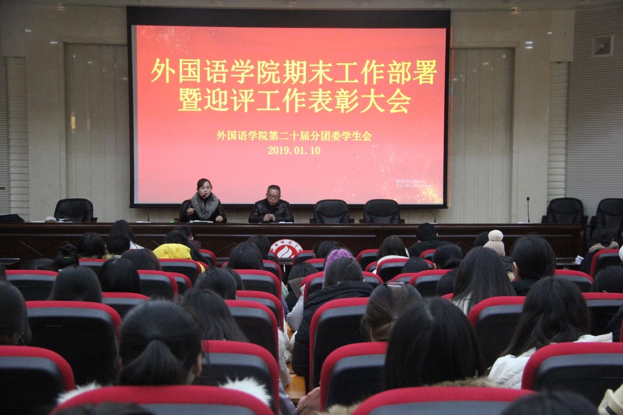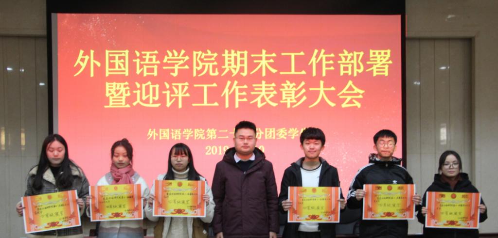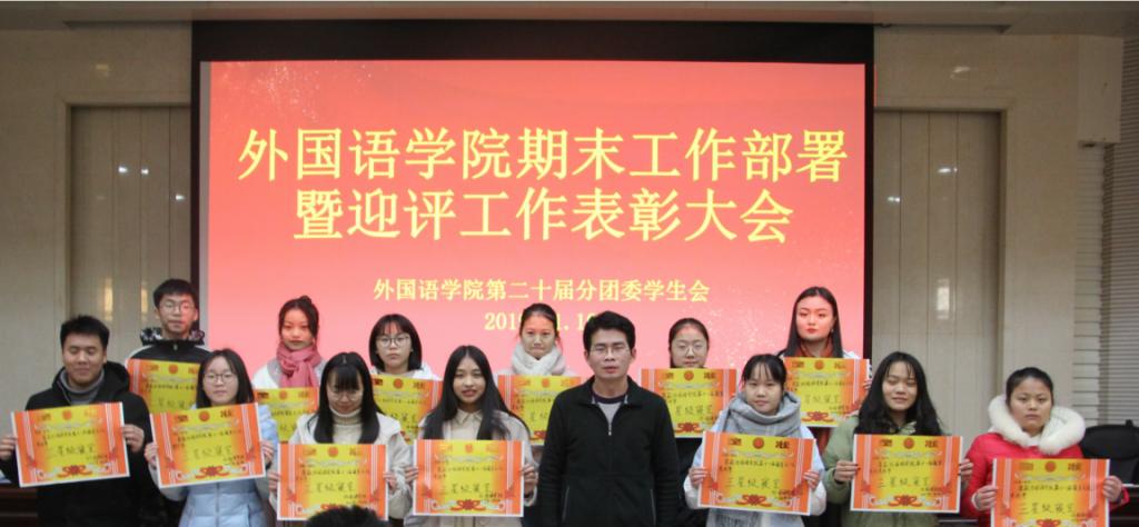 1月10日中午,我院于外北311召开本期末工作部署暨迎评工作表彰大会,参加本次会议的有yL23411永利集团官网登录党总支书记郭友文,党总支副书记贺琴琴,辅导员老师江子丹、邱国周,以及yL23411永利集团官网登录第二十届分团委学生会全体成员以及2016-2018级班长团支书。