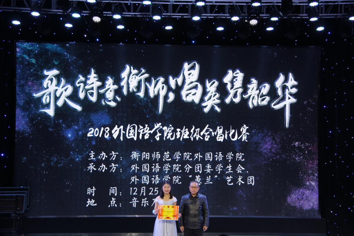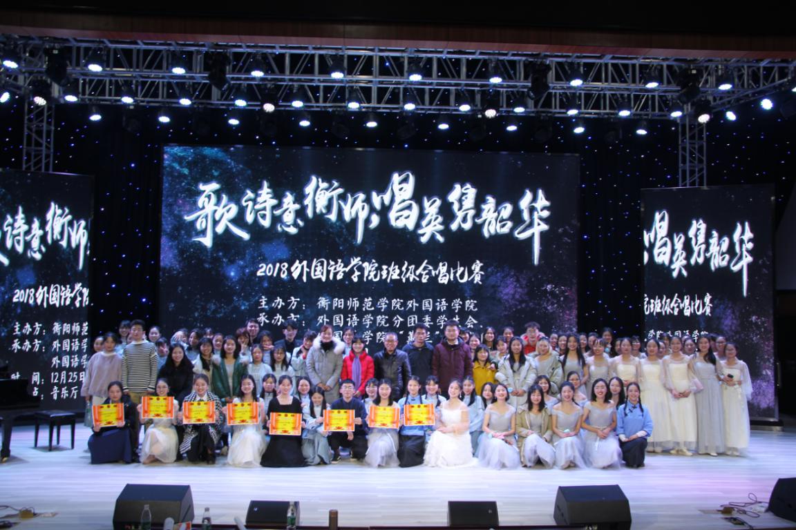 12月25日晚,我院于学校音乐厅举行了“歌诗意衡师 唱英隽韶华”2018年班级合唱比赛。yL23411永利集团官网登录党总支书记郭友文,党总支副书记贺琴琴,辅导员老师江子丹、邱国周以及2017级、2018级学生代表们一同观看了比赛。