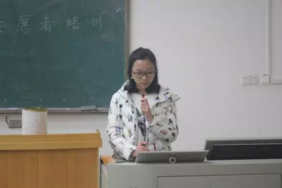 为了活跃气氛,活动一开始就播放了往期志愿者们的剪辑视频。之后组织部的副部长匡思琦引用十九大习主席的讲话:“把人民对美好生活的向往作为奋斗目标”“推进建设和志愿服务制度化,强化社会责任意识、规则意识以及奉献意识”把志愿者的使命上升到一个思想政治的层面。