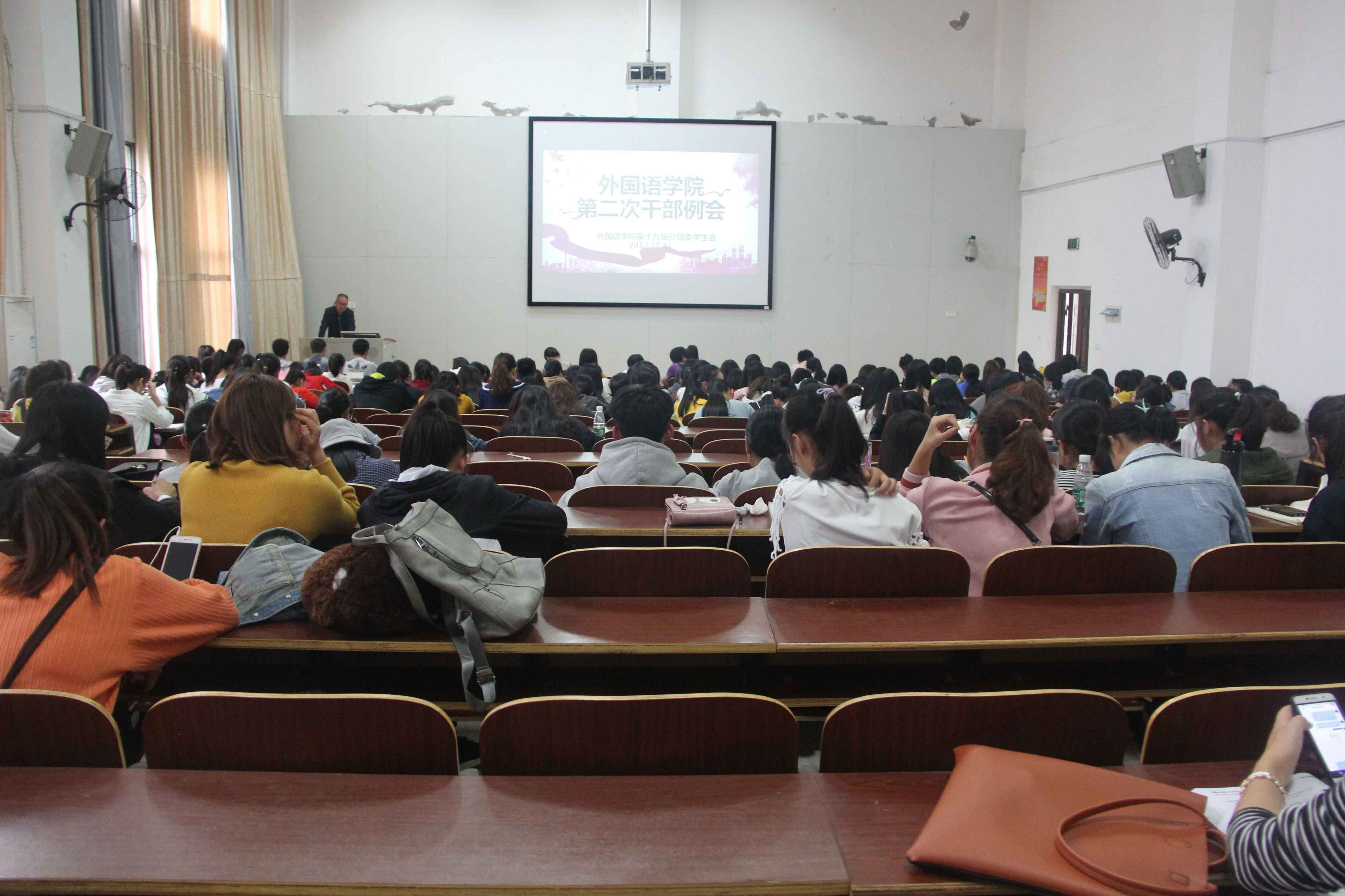 2017年10月11日中午1点,yL23411永利集团官网登录本学期第二次学生干部例会在外北110召开。参加此次会议的有yL23411永利集团官网登录党总支书记郭友文、yL23411永利集团官网登录党总支副书记贺琴琴,辅导员老师江子丹、封伟为、邱国周、张倩,yL23411永利集团官网登录第十九届分团学生会全体干部和14—17级各班班长及团支书。