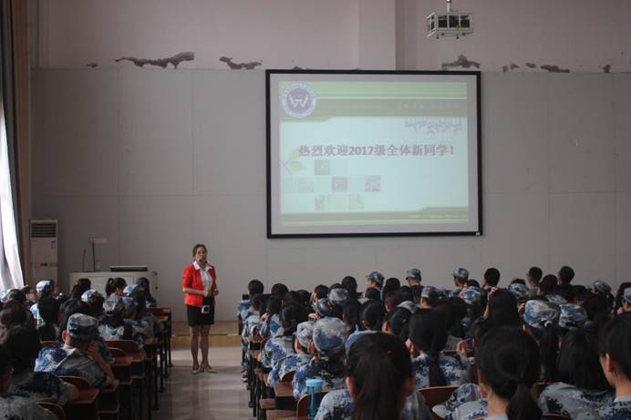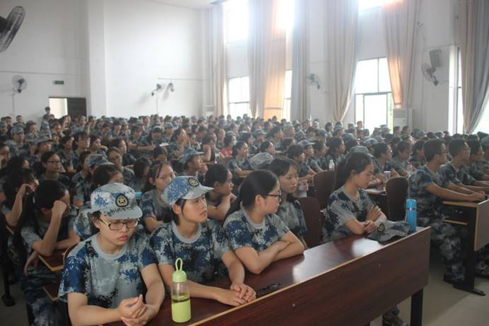 接下来,贺琴琴副书记向新生们作了军训动员,传达了军训期间的几个重点,第一是内务整理,贺书记表示,一定要将内务搞好,要求新生们予以重视,在即将到来的内务评比中,为外院再创佳绩,勇夺桂冠。第二是队列会操,在往年的队列会操比赛中,外院一直都是功勋卓著的,要求新生们加紧训练,做到军训有效果,比赛有实力。