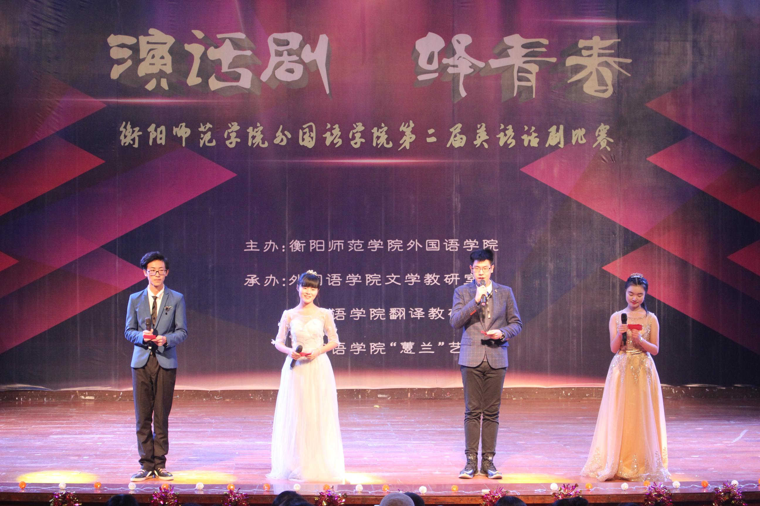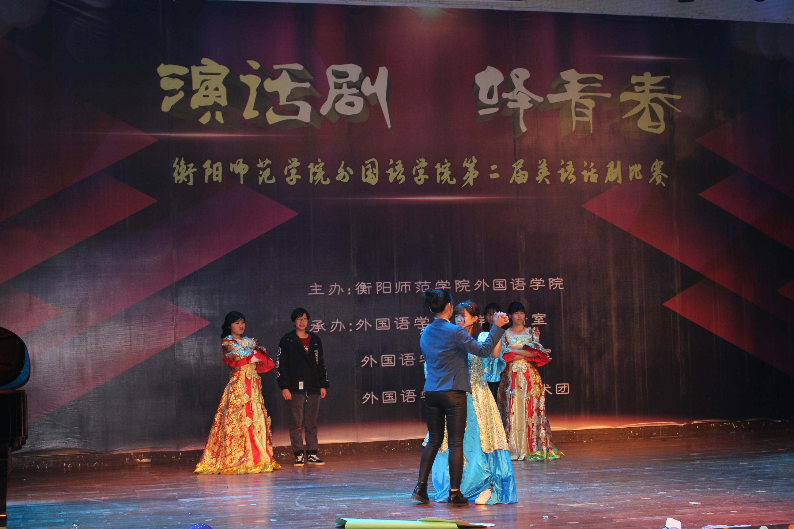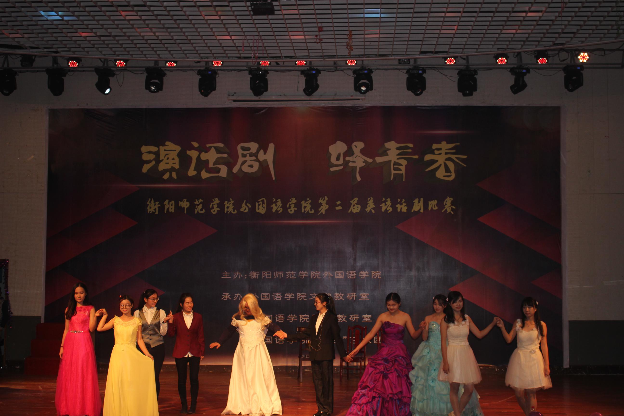 2016年11月28日晚,yL23411永利集团官网登录“演话剧,绎青春”第二届英语话剧比赛于音乐厅隆重举行。此次比赛由yL23411永利集团官网登录主办,yL23411永利集团官网登录文学教研室、翻译教研室及“蕙兰”艺术团承办。yL23411永利集团官网登录党总支书记郭友文、院长贺学耘、党总支副书记贺琴琴、副院长贺鸿莉、辅导员老师邱国周、江子丹及高攀老师作为嘉宾出席了本次比赛。同时比赛还特邀了yL23411永利集团官网登录文学及翻译教研室的6位老师担任评委,他们分别是:肖启芬、邵莉、谭亚芳、吕凌云、张敏、尹静。在场观众为15、16级学生。