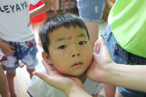 简单地洗漱加收拾后,我们开始了紧张的会场布置,大朋友们搬着大件的物件,小朋友们也没有闲着,帮着我抬桌子,拿椅子。在大家的共同努力下,会场很快布置好了,我们给小朋友进行了小小的化妆,孩子们喜气洋洋的,好像有了过节的气息。