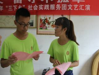 这次“三下乡”活动,虽然只有短短的3天时间,但是经过我们的紧张的筹备,我们依然做出了一场文艺汇演。在准备的过程中,既有痛苦也有欢乐,痛苦的是我们每天都要排练到很晚才睡,快乐的是我们上台给大家带来了欢乐。累归累,但是我们从不抱怨,一直坚持着想把文艺汇演做得更好。最后,文艺汇演举行得非常顺利,并且得到了当地乡亲们的好评。