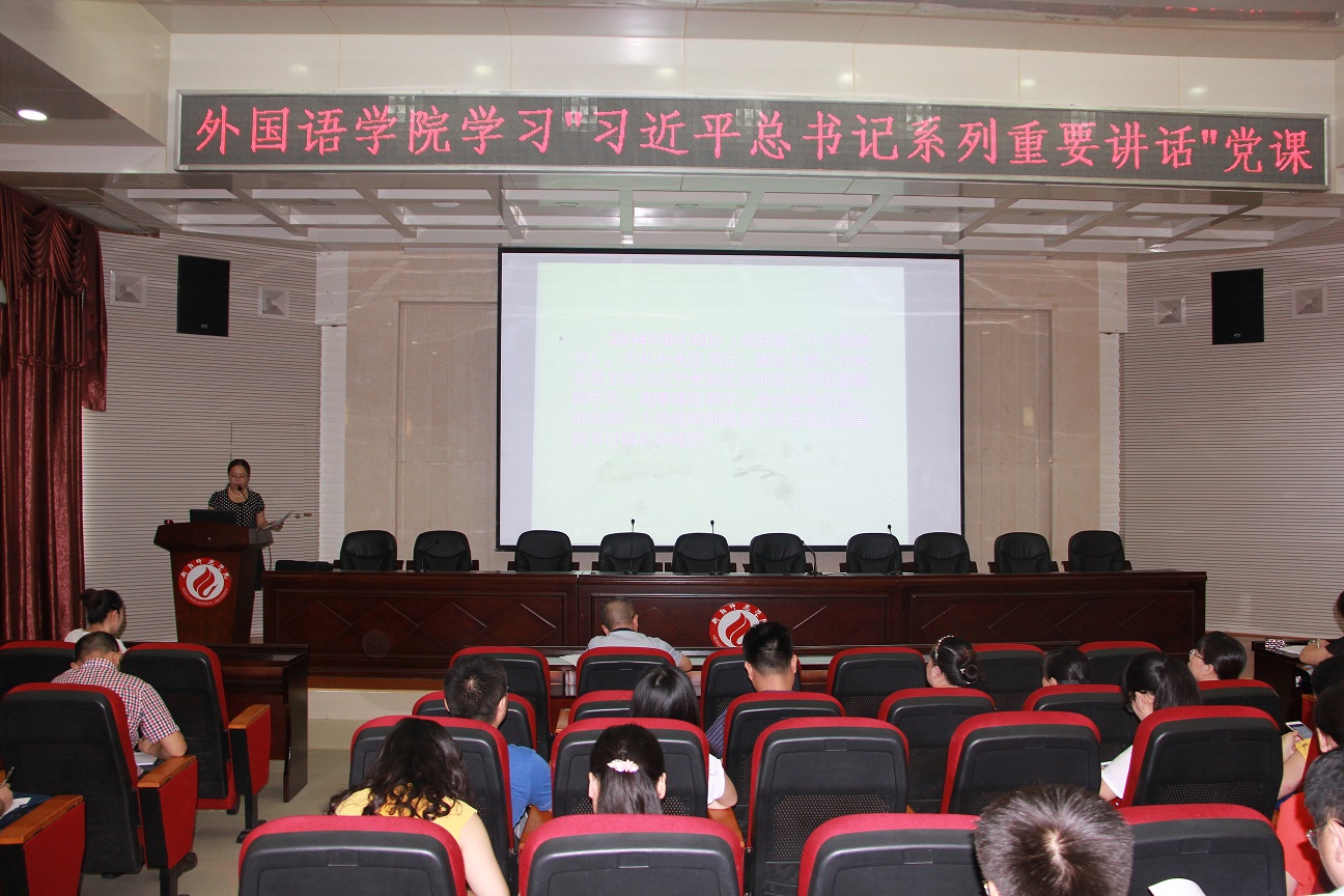 2016年6月30日上午,yL23411永利集团官网登录在外语楼北311多功能厅开展了一次题为“教育的春天”的“两学一做”党课。党课由yL23411永利集团官网登录书记郭友文同志主持,yL23411永利集团官网登录院长贺学耘教授主讲,yL23411永利集团官网登录全体教师党员聆听了本次党课。