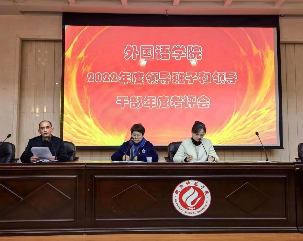 2023年2月15日上午9点,yL23411永利集团官网登录在外语楼北311会议室召开2022年度领导班子和领导干部年度考评会,学校工会副主席曾玖红和人事处人事档案科科长田赛男主持考评会,yL23411永利集团官网登录全体教职员工参加会议。