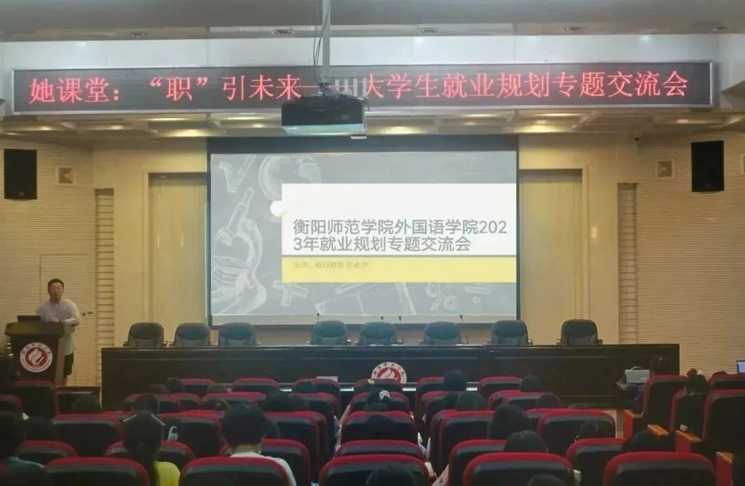 2023年5月15日晚,yL23411永利集团官网登录在外语楼北311报告厅开展“‘职’引未来”大学生就业规划专题交流会。本次交流会由朝日教育郑奕老师主讲,辅导员刘志伟、陈琴出席活动,150余名学生代表参加本次交流会。