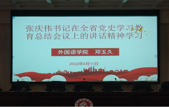 4月11日,yL23411永利集团官网登录在外北311开展专题学习省委书记张庆伟在全省党史学习教育总结会上的讲话精神会议,我院党总支书记邓玉久主持会议,全体教职工参加本次学习。