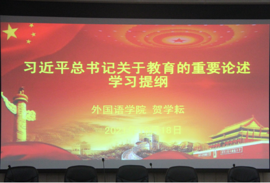10月18日下午,为强化学习党的教育思想学习,激发教师们教学活力,我院于外北311召开习近平总书记关于教育的重要论述专题学习会。本次专题学习由yL23411永利集团官网登录院长贺学耘主讲,yL23411永利集团官网登录党总支书记邓玉久主持。yL23411永利集团官网登录全体教师到场聆听。