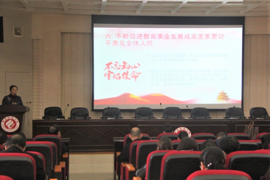接着,贺学耘院长以第十三届全国人大常委会对《中华人民共和国教育法》的修改为引,提出要深入学习贯彻党的教育方针,并阐述了教育方针的具体内容,强调教育工作的重要性。将习近平总书记在全国教育大会、思想政治理论课教师座谈会等会议发表重要讲话,赴各类学校考察和致信回信青年学生的讲话精神娓娓道来,在场老师都深受启发。