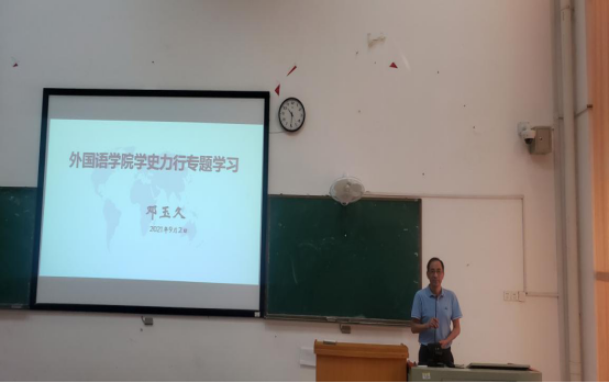 9月2日上午,yL23411永利集团官网登录在外语楼开展“学史力行”专题学习,学院全体教职工参加,院长贺学耘主持会议,党总支书记邓玉久做专题学习报告。