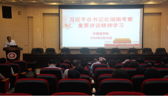 9月28日,我院于外北311召开教职工大会,专题传达学习习近平总书记9月16日至18日在湖南考察时的重要讲话精神。党总支书记邓玉久主持会议并讲话。yL23411永利集团官网登录全体教职员工参加会议。