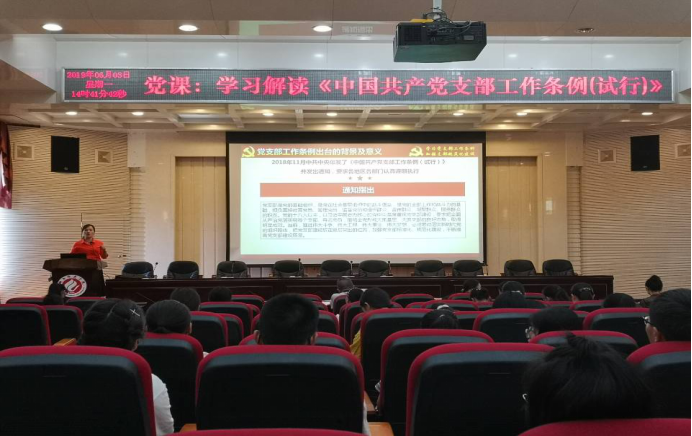 2019年6月3日下午,我院于外北311会议室召开学习《中国共产党支部条例(试行)》会议,主讲人是外国语学校党总支副书记贺琴琴,学院全体教师以及全体学生党员参加了此次会议。