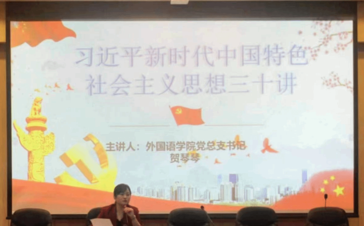 学思想,强党性。为响应党的号召,帮助我院党员教师深入学习和领会习近平新时代中国特色社会主义思想体系,进一步树立“四个意识”,增强“四个自信”,9月11日下午,我院党总支书记贺琴琴以《习近平新时代中国特色社会主义思想三十讲》为主题,于外语楼311报告厅为全院党员教师讲授党课。