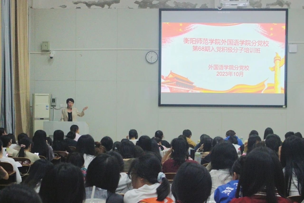 10月16日晚,yL23411永利集团官网登录分党校在外语楼北110多媒体教室开展第68期入党积极分子培训。yL23411永利集团官网登录党总支副书记欧阳竹以“学习光辉党史,沿着中国特色社会主义道路前进”为主题,为全体学员带来了一场生动的党课。yL23411永利集团官网登录、马克思主义学院、法学院全体入党积极分子参加此次培训。