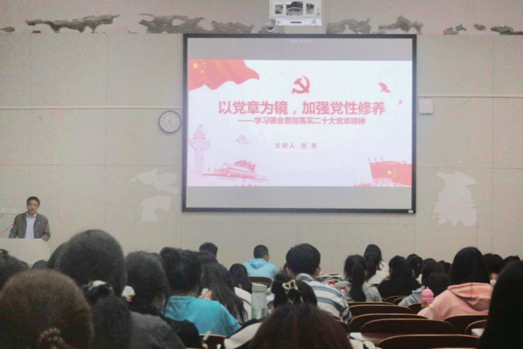 本次党课从为什么要修改党章、二十大党章修改的主要内容、党章修改工作的特点以及以党章为镜,加强党性修养等四个方面展开。