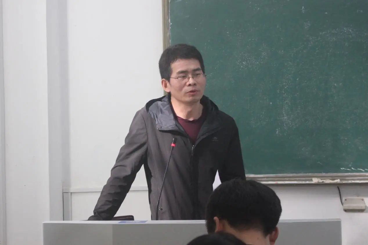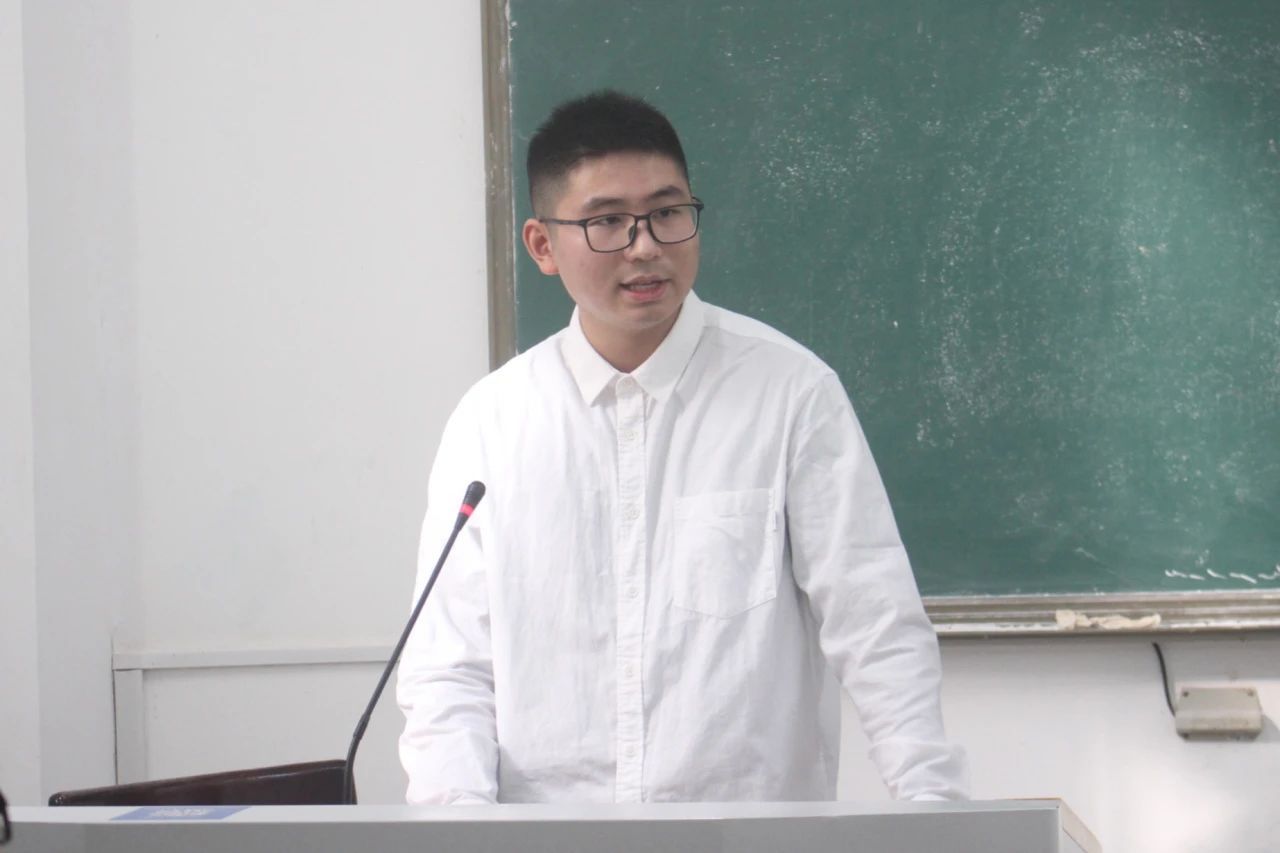 (学生第一党支部书记刘志伟在外北102教室主持会议)