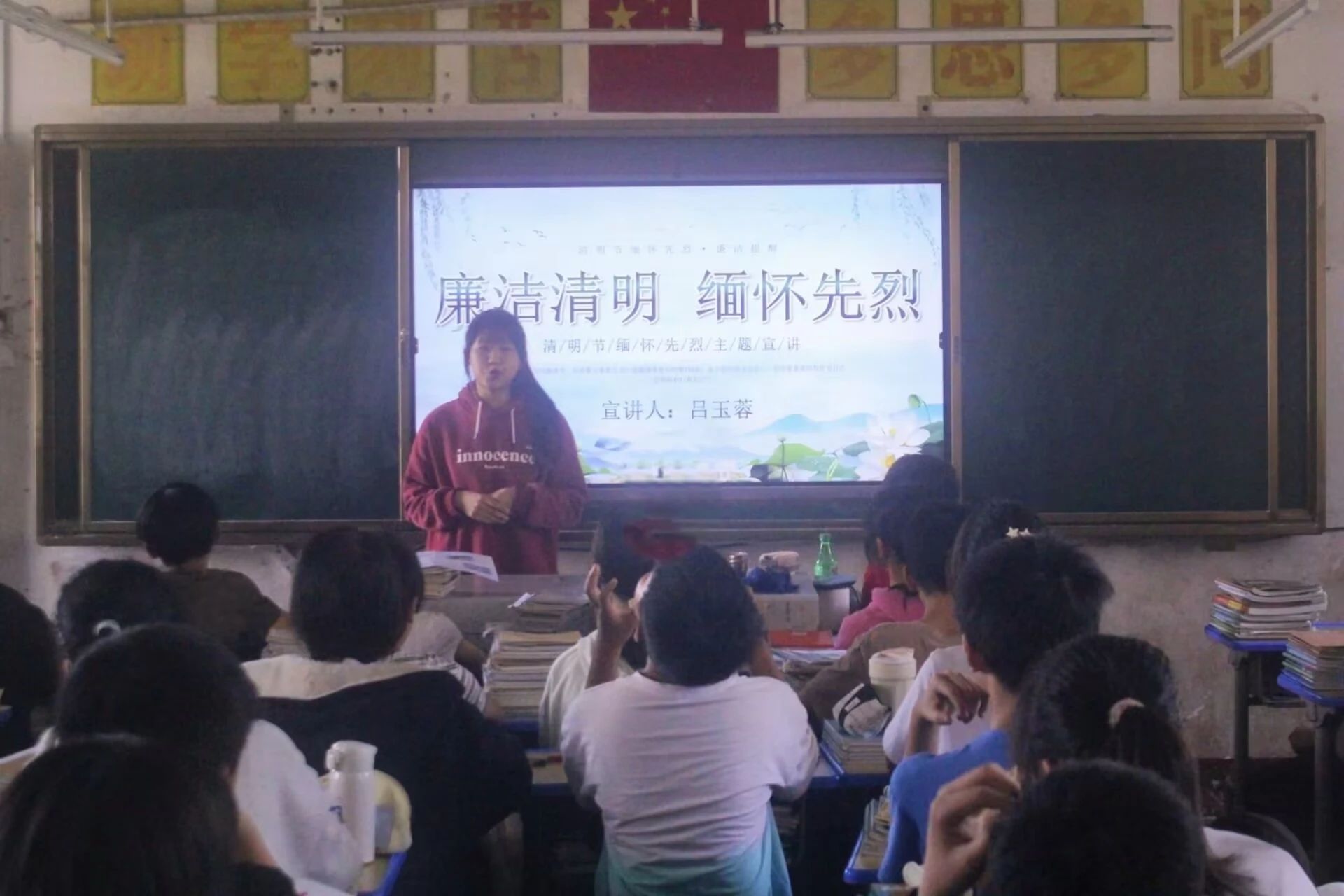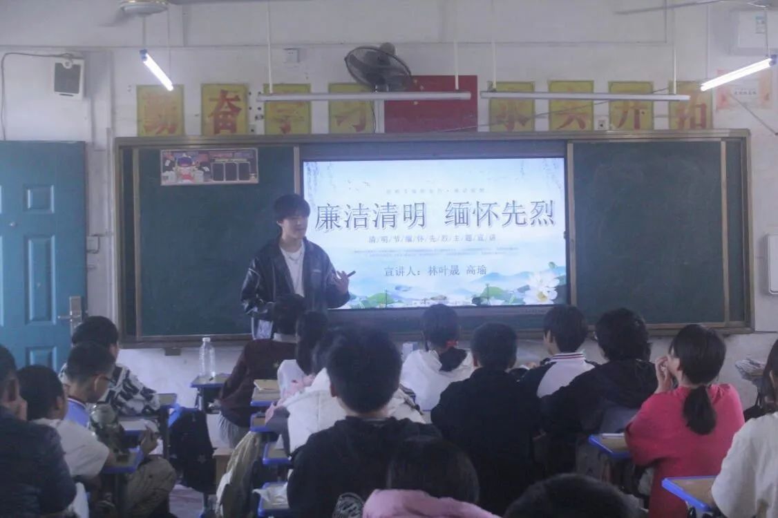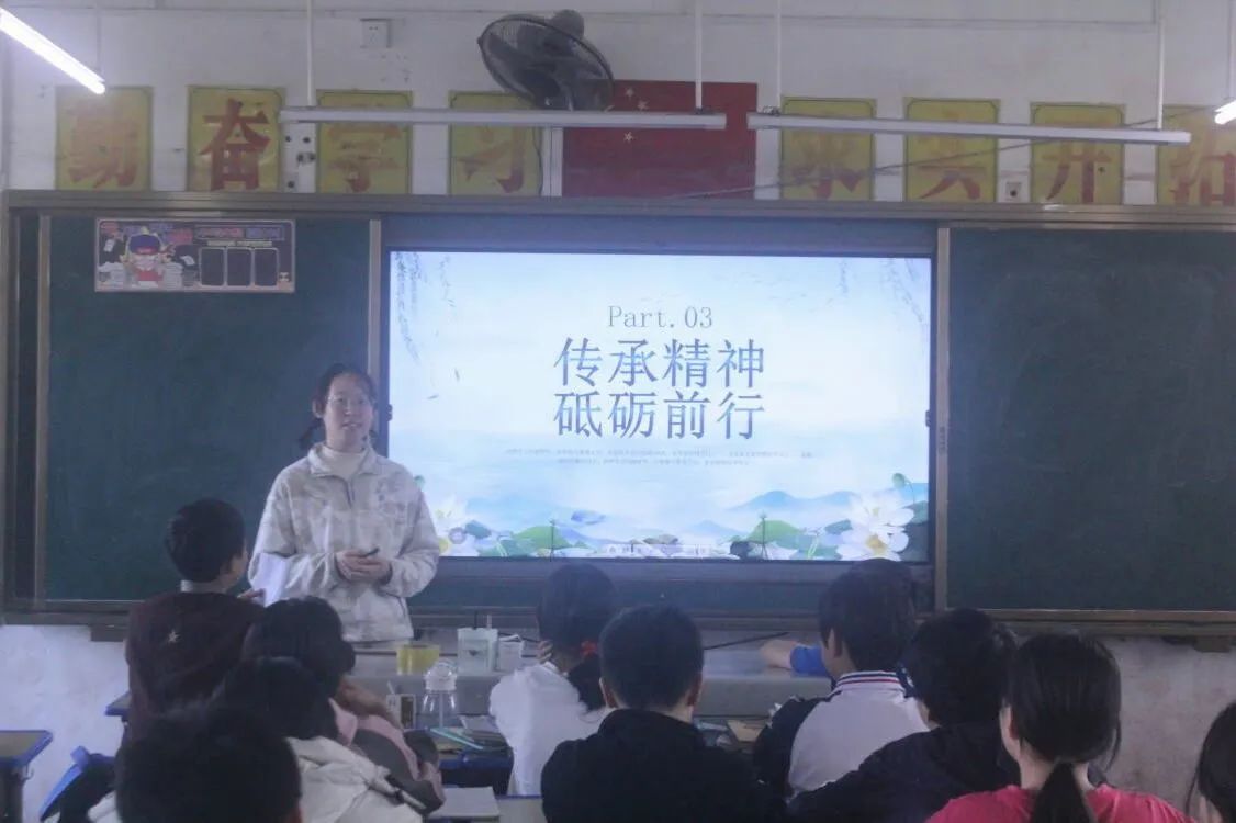 活动现场,党员林叶晟、高瑜,入党积极分子吕玉蓉以晋国公子重耳与介子推的故事引出清明节的由来及习俗。接着,他们带领酃湖中学的同学们一起了解了董存瑞、邱少云、狼牙山五壮士等英雄的光荣事迹。同学们通过学习先烈们可歌可泣的革命事迹,进一步增强了爱国意识,传承红色基因,树立了坚定的民族自信心、国家自豪感。