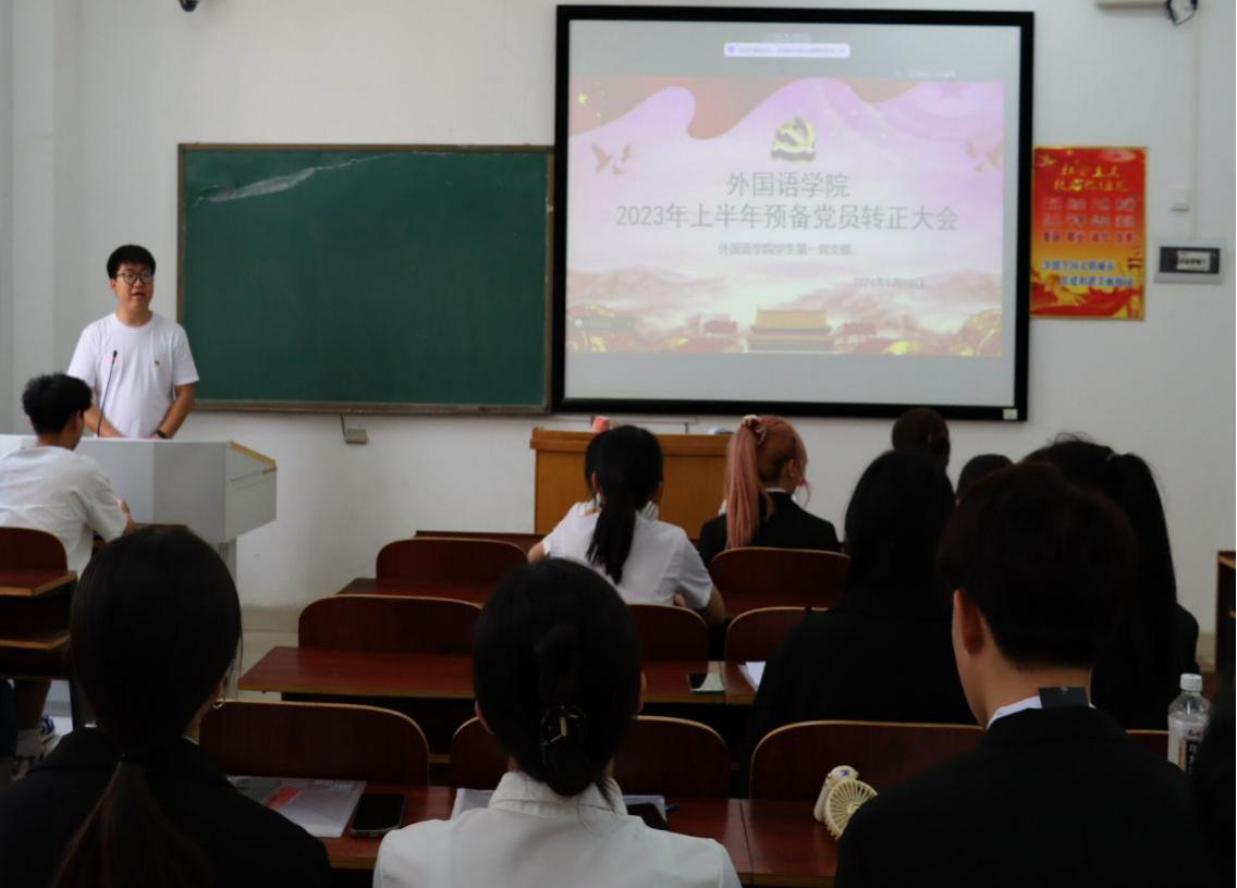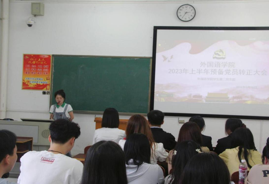 为进一步加强党员队伍建设,推动学院党员管理工作有效开展,营造充满生机的良好育人环境。5月10日下午,我院学生第一、第二党支部分别于外语楼北102、104教室召开2023年上半年预备党员转正大会,大会审议、讨论、表决了关于杜思杰等17位预备党员的转正问题。会议分别由我院学生第一党支部书记刘志伟、第二党支部书记陈琴主持,17名预备党员及其入党介绍人和全体学生党员参加会议。