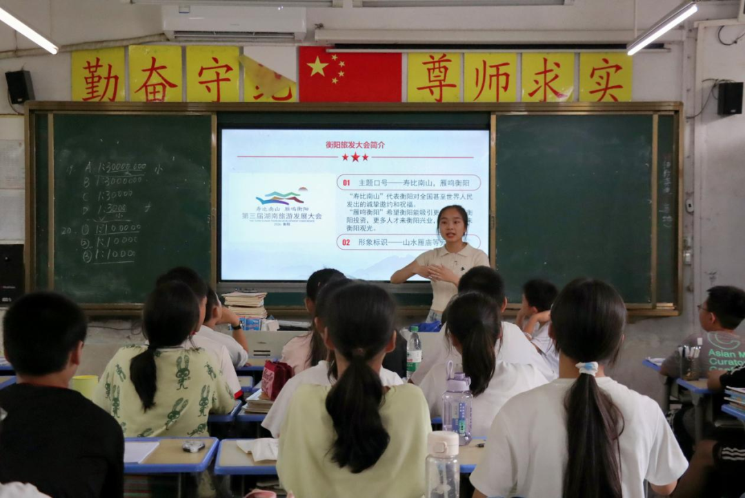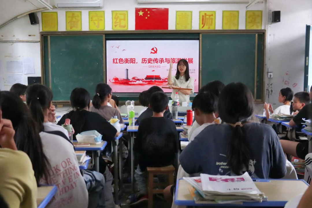 寿比南山,雁鸣衡阳。为向酃湖中学的同学们宣传第三届湖南旅游发展大会,传播历史文化,传承红色基因,激发广大青年学生对家乡的认同感和自豪感,9月27日下午,yL23411永利集团官网登录学生党支部、研究生支教团前往酃湖中学开展“红色衡阳,历史传承与旅游发展”主题宣讲活动。