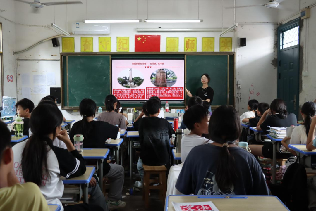 支教团的成员们通过介绍衡阳抗战纪念城、夏明翰故居、中共清潭地下党支部旧址等红色基地,让同学们更加深入了解衡阳的抗战历史和深厚文化底蕴。那些存在于书本中的故事,变得鲜活而生动,他们深刻地领悟到,自己脚下的这片土地,承载着无数先辈的热血与梦想,是一个值得骄傲和守护的精神宝库。“我们要铭记历史,珍惜现在的幸福生活,努力学习,为家乡的发展贡献自己的力量。”同学们纷纷有感而发。