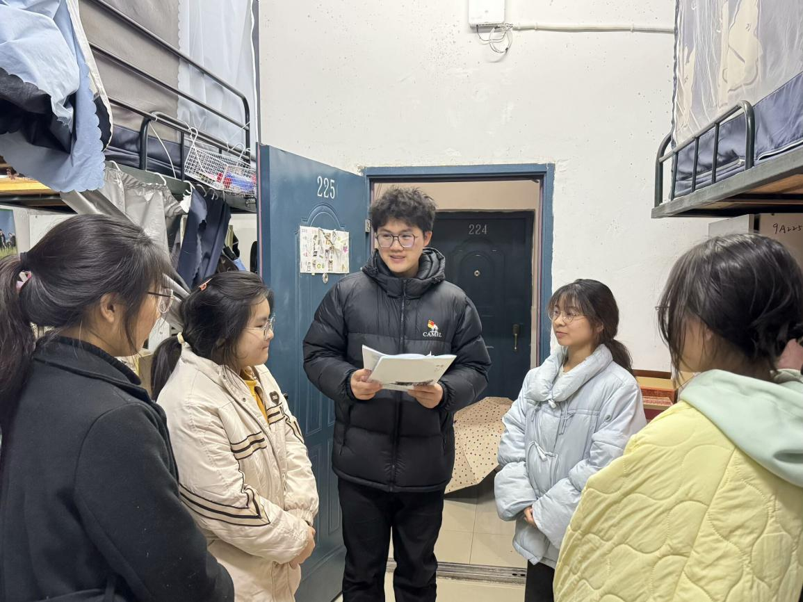 主题党日活动期间,学生党员们分组深入2022—2023级学生寝室,继续宣讲党史和党建工作成果,共同讨论“在党史中学习什么样的精神”“如何将这些精神如何运用到学习生活中”等问题。同时针对同学们关心的入党流程、专业学习、职业规划等问题进行详细解答。2023级商务英语专业殷晴同学表示:“党员们不仅带领我们学习了党史,还解答了我的困惑,分享了很多实用的学习经验,我觉得这样的交流特别有意义。”