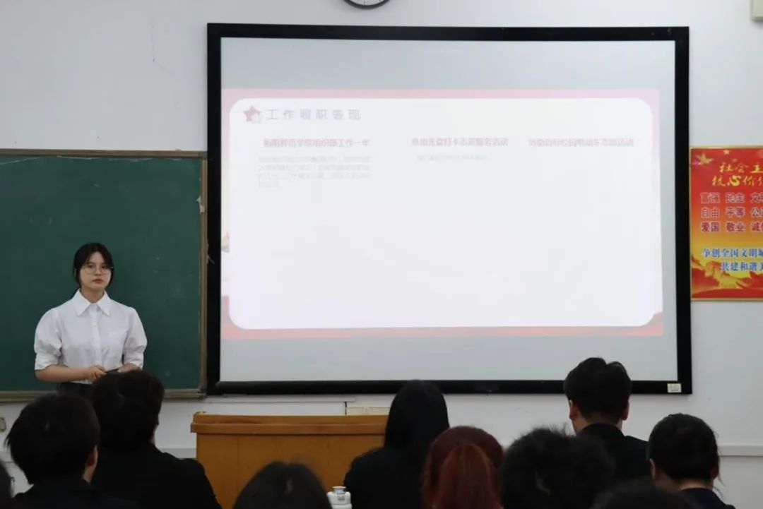 (学生第二党支部书记陈琴在外北105教室主持会议)