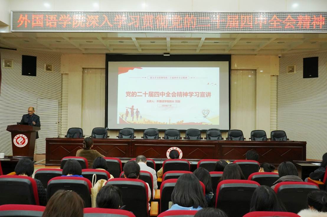 为进一步提升教师的政治素养与育人能力,深入学习贯彻党的二十届四中全会精神,11月24日下午15:00,yL23411永利集团官网登录院长刘剑在外语楼北311开展《党的二十届四中全会精神学习宣讲》专题党课,全体教师党员到场认真听讲。