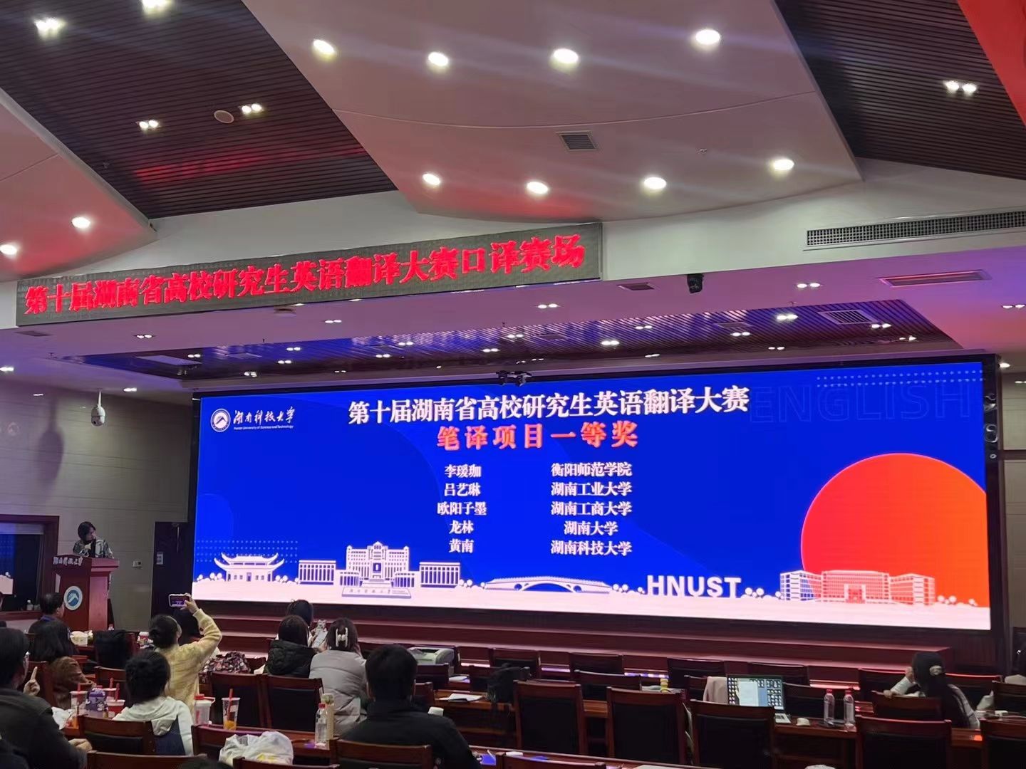 2023129日,由湖南省教育厅主办、湖南科技大学承办的第十届湖南省高校研究生英语翻译大赛落下帷幕,我院2023级研究生李瑗珈(指导老师:刘剑、谭晓丽)荣获笔译组一等奖。